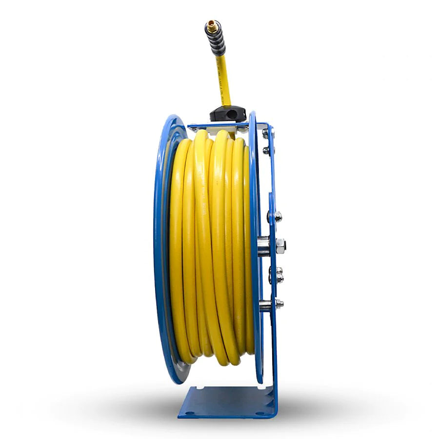 At the heart of this extraordinary tool lies the RMA Class A Oil Resistant Air hose, delivering unwavering reliability and flexibility even in the harshest conditions. The fully enclosed multi-position 12-point ratchet spring system empowers you to effortlessly secure the hose at varying lengths, providing optimal ease of use. With its brass swivel joints and hose inlet connection, leaks become a thing of the past, ensuring uninterrupted operation. The reel stopper and four non-snag rollers work harmoniously to significantly reduce hose abrasion, in turn, extending the longevity of your equipment.
